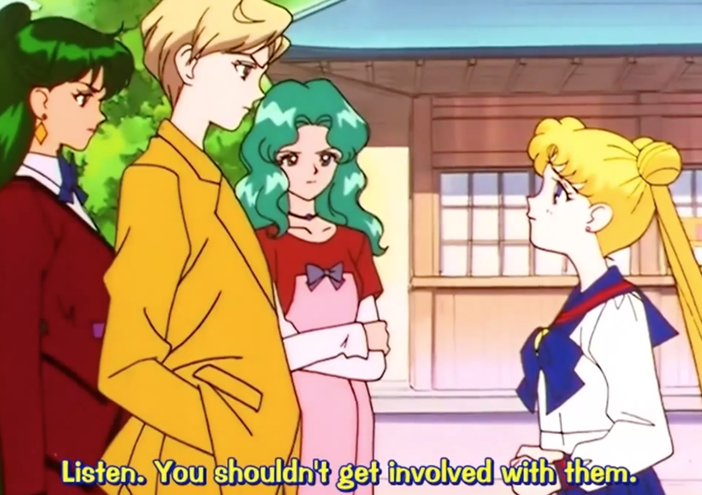 - Haruka, Michiru, and Setsuna don’t want Usagi anywhere near these outsider Sailor Soldiers.